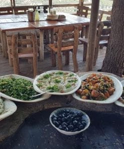 מבחר תבשילים ביתיים, מאפי טאבון מסורתיים, סלטיי העונה…לסיום נקנח עם בקלאווה מתוקה, קפה שחור מבושל ותה מרווה מההר .